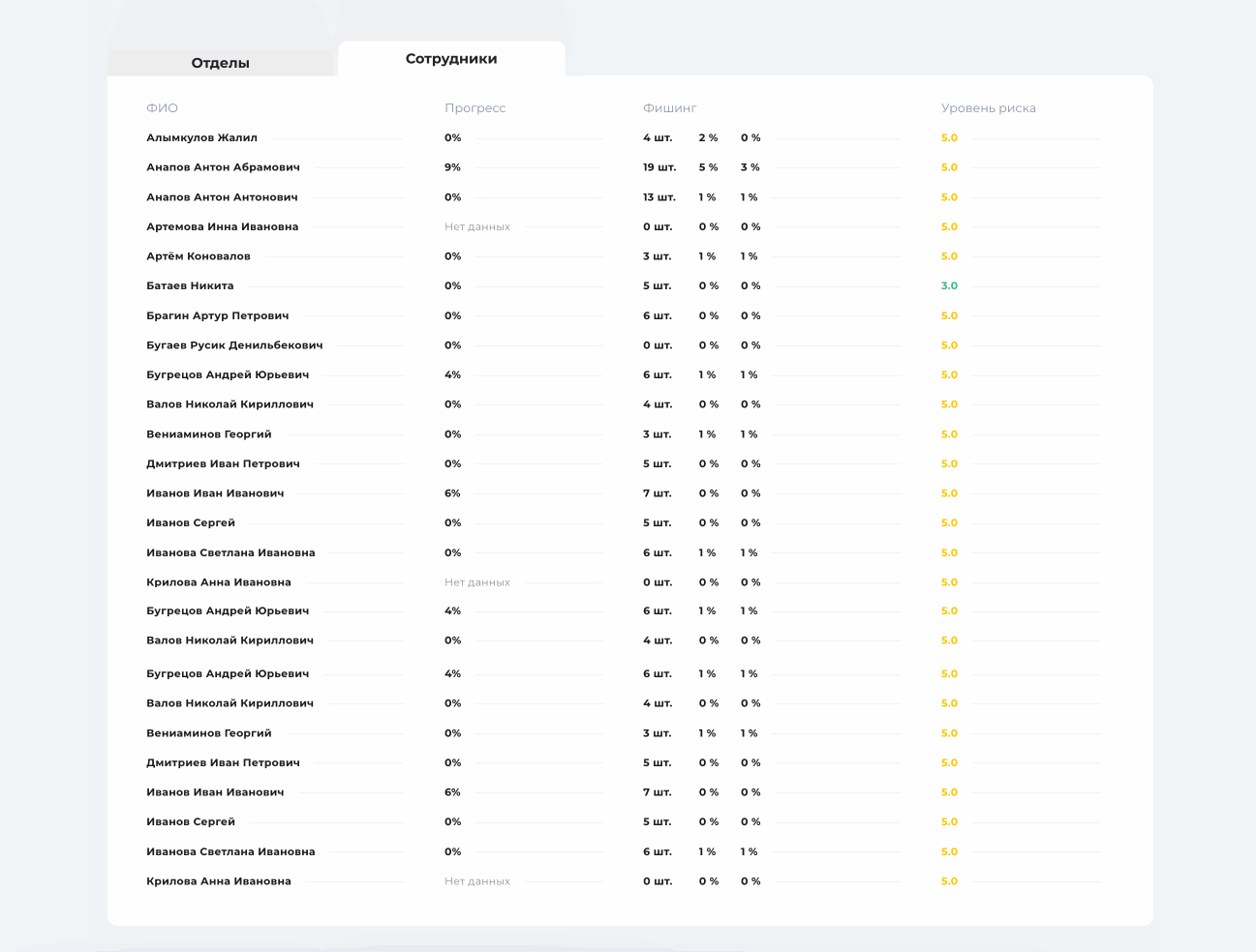 Выявление уязвимых зон и проблемных сотрудников
